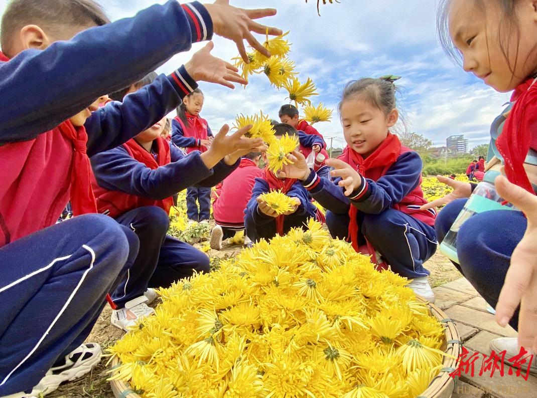 株洲市二中青龙湾小学开发神农文化校本课程,带着全校师生花海采菊,浸润中医药文化。