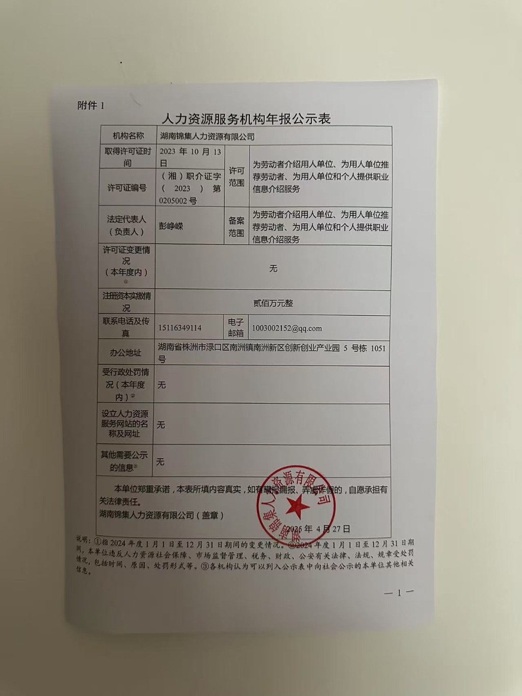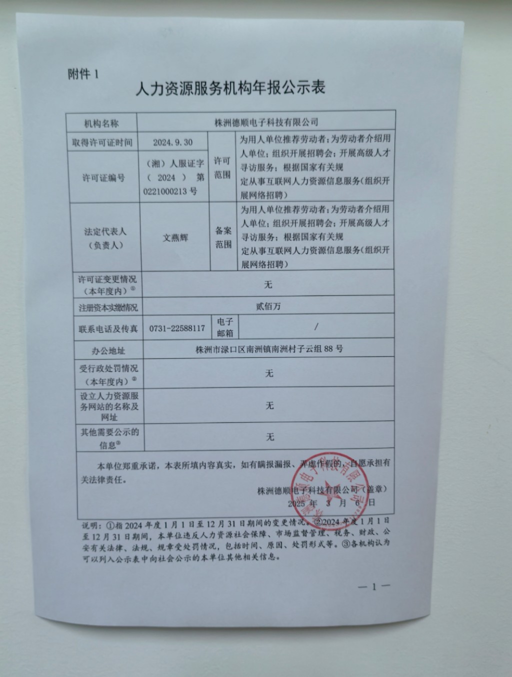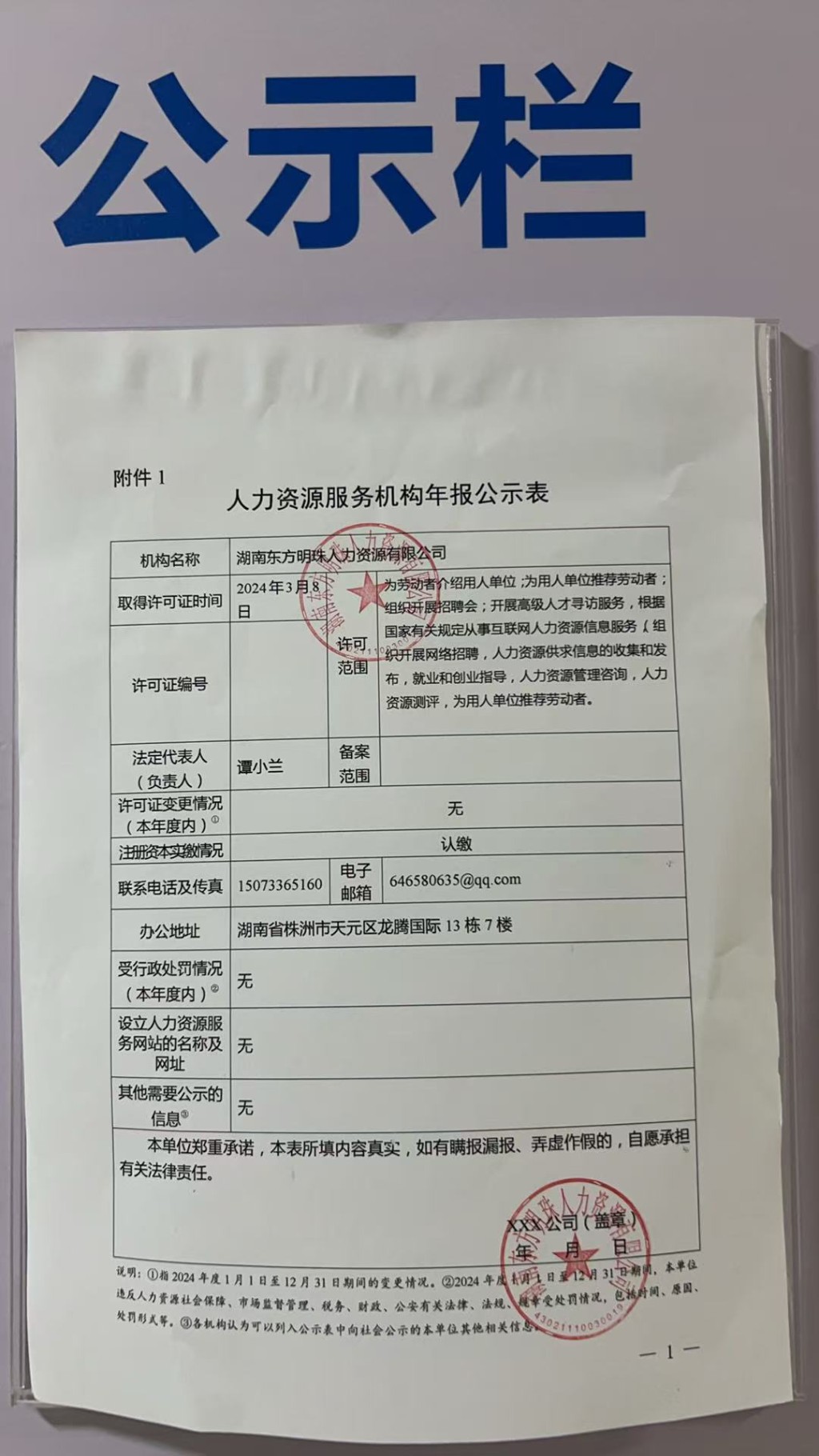 附件:1.人力资源服务机构年报公示表(湖南东方明珠人力资源有限公司)