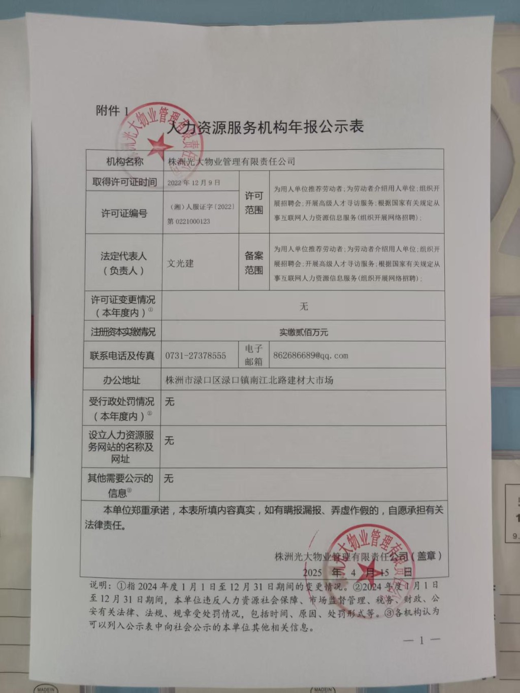 2.人力资源服务机构年报公示表(株洲光大物业管理有限责任公司)