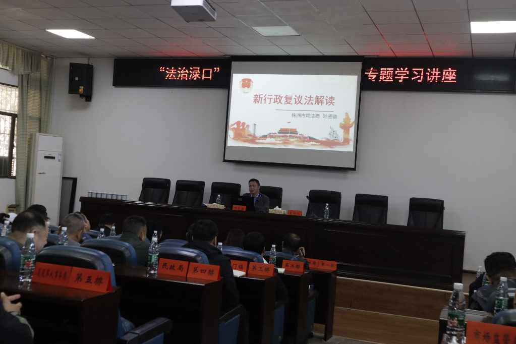 11月28日,渌口区举办“法治渌口”专题学习讲座,邀请了市司法局行政复议与应诉一科科长叶贤德为各镇、各行政执法单位分管领导、工作人员解读新《行政复议法》。叶科长从行政复议制度和改革背景出发,围绕行政复议受案范围、行政复议参加人和行政复议机关、行政复议的申请、行政复议案件的受理、行政复议案件的审理、行政复议的决定和执行几个方面进行了详细解读。讲座内容丰富、分析透彻,紧密切合行政复议工作实际,具有很强的针对性和指导性,为全区行政机关工作人员全面掌握修订内容,积极适应行政复议法修订提出的新要求,着力规范行政复议案件办理,全面提升法治政府建设水平打下了良好的基础。