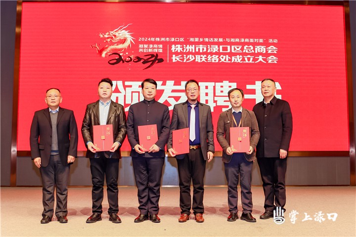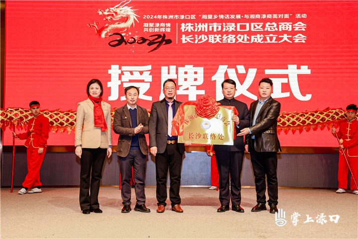 凝聚渌商情,共聚新辉煌。3月6日,2024株洲市渌口区"湘里乡情话发展 与湘商渌商面对面"暨株洲市渌口区总商会长沙联络处成立大会召开,200多名在长渌口籍企业家、政界代表、国企代表、院士专家汇聚一堂,共叙友谊,共商发展大计。区委书记、渌口经开区党工委第一书记李晓彤致辞,区委副书记、区长赖晓智出席并授牌,株洲市渌口区总商会长沙联络处主任、湖南大鍺汇商业连锁有限公司董事长肖运红,广东省湖南株洲县商会会长、广东佳医邦健康管理集团有限公司董事长张文安出席并讲话。
