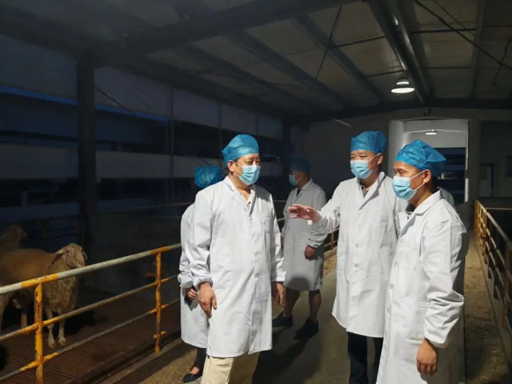 在华欣牧业有限公司,王巍一行参观了产业园湖羊文旅发展片区、屠宰预制菜加工及冷链物流片区、湖羊养殖片区三大片区,详细了解湖羊养殖、羊肉开发和冷链运输等情况。
