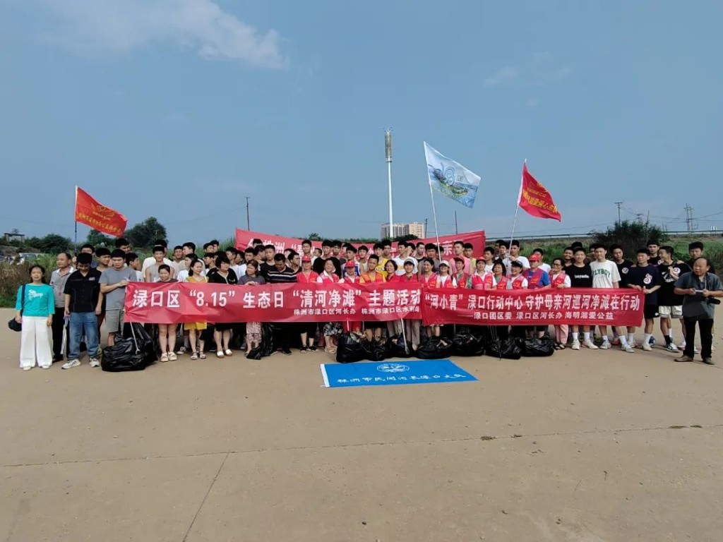 8月15日下午四点,渌口区河长办联合区水利局、融媒体中心、渌口镇河长办、城管局环卫处、“河小青”、民间河长、AF株洲“碧水蓝天”行动团队、海明湘爱公益团队、新辉篮球俱乐部等40余名志愿者在渌口镇渡口附近开展“8.15”生态日清河净滩主题活动。