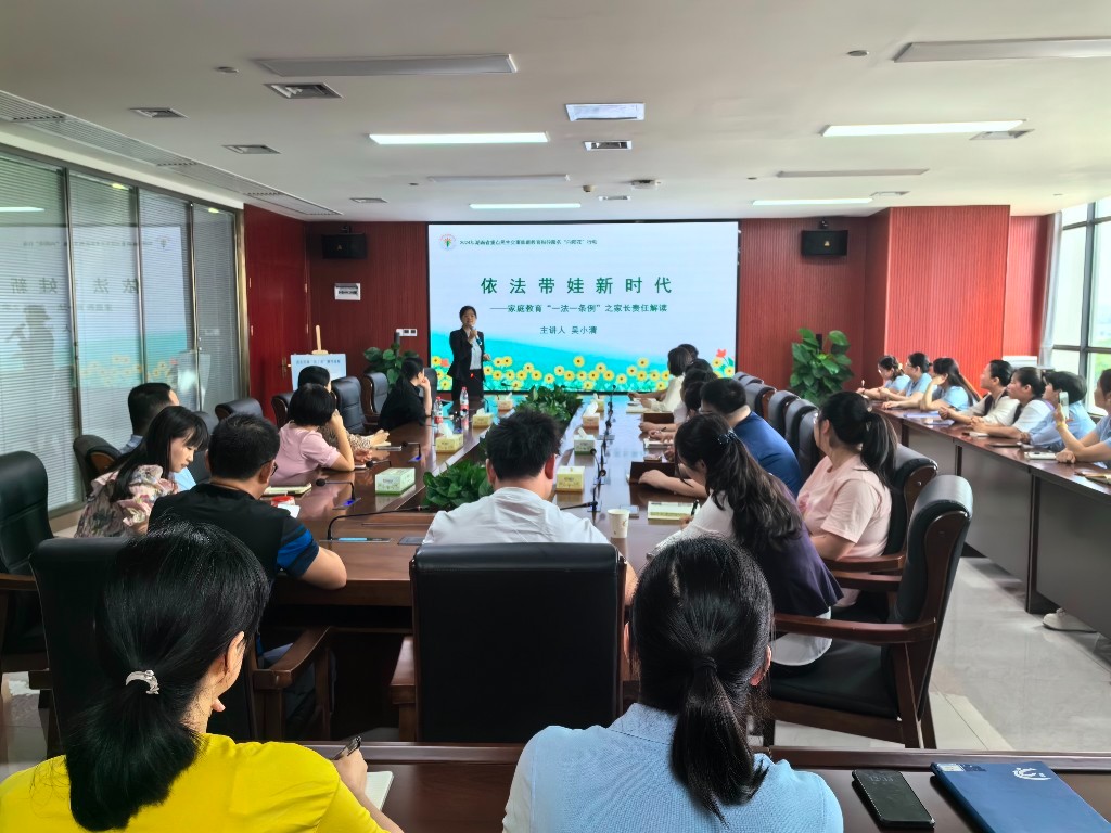 为扎实有效开展好家庭教育指导服务和实践活动,强化家长家庭教育主体责任。近日,湖南省重点民生实事家庭教育指导"向阳花"行动走进渌口区行政审批服务局,成功开展了一场以“依法带娃新时代”为主题的法治讲座,全局共50余人参加讲座。