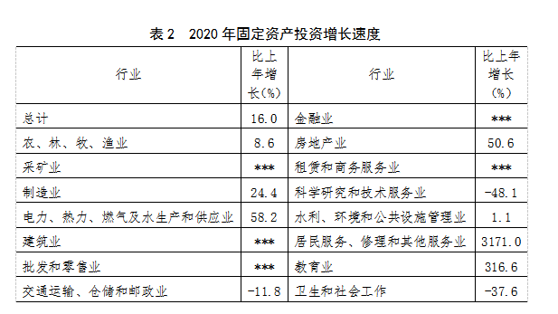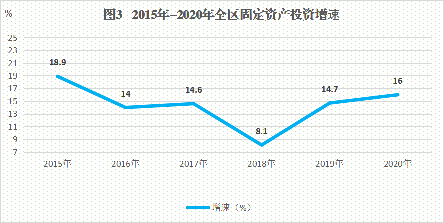 全年全区固定资产投资比上年增长16%,分别高于全国、全省、全市13.1、8.4、6.3个百分点。在固定资产投资中,第一产业投资比上年增长17.0%;第二产业投资增长27.0%;第三产业投资增长9.8%。