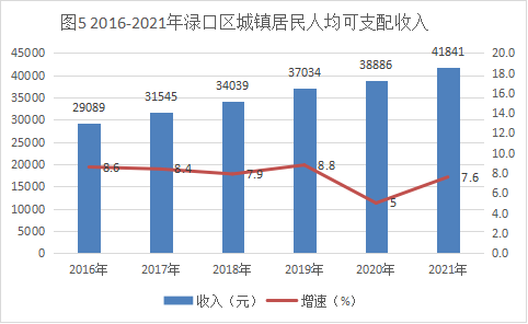 2021年全区居民人均可支配收入29417元,比上年增长9.2%。城镇居民人均可支配收入41841元,增长7.6%。其中,工资性收入17967元,增长7.8%;转移净收入18290元,增长6.9%;经营净收入2737.1元,增长12.5%;财产净收入2847.4元,增长6.5%。农村居民人均可支配收入24329元,增长10.4%。其中,工资性收入11661.9元,增长11.2%;转移净收入5828.4元,增长9%;经营净收入6124.7元,增长10.4%;财产净收入714.1元,增长8.9%。城乡居民收入比为1.72:1。全区城乡居民人均生活消费支出21424.4元,比上年增长11.4%,其中,居民文教娱乐服务消费支出3133.1元,占消费总支出比重为14.6%。城镇居民和农村居民人均消费支出分别为22119元和21140元,同比分别增长5.9%和13.9%。