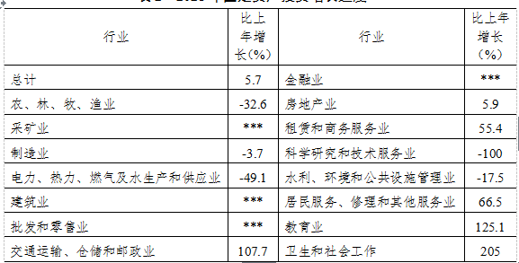 表2 2021年固定资产投资增长速度